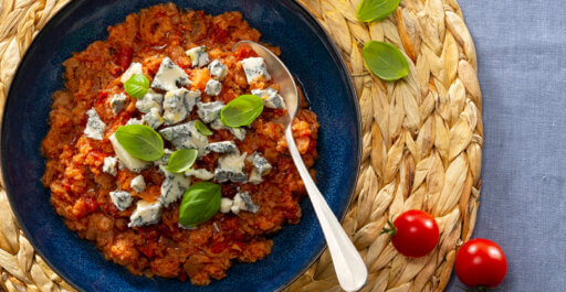 Rist brødet og anret et stykke Gorgonzola BOB på hvert...
